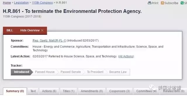 2017-02-14 中國環(huán)境新聞2017年2月3日,美國國會公布了一份來自國會參議員的提案,名稱為《撤銷環(huán)境保護局》(To terminate the Environmental Protection Agency),提議在2018年底撤銷國家環(huán)境保護局。What ? 在環(huán)境議題已經在全世界廣受關注的時候,居然會有人提議撤銷環(huán)保局!美國國會網站公布的“關于撤銷環(huán)境保護局議案”這份“撤銷環(huán)境保護局”的議案由來自佛羅里達州第一選區(qū)的參議員馬特?蓋茨(Matt Gaetz)牽頭提出,該議案同時有另外三名共和黨議員聯名附屬簽名提出。