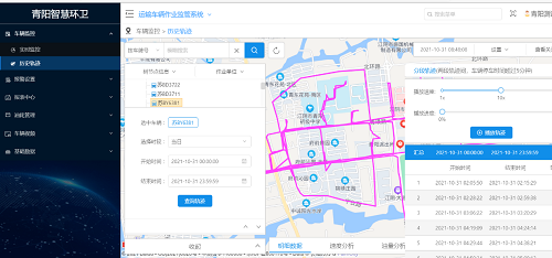 車輛內(nèi)部安裝有GPS定位系統(tǒng)和智能監(jiān)控?cái)z像頭,這些智能設(shè)備獲取的數(shù)據(jù)可以實(shí)時(shí)傳輸?shù)街腔郾O(jiān)管后臺(tái),每種垃圾收運(yùn)車只需要按照規(guī)定路線依次收運(yùn)即可,一旦車輛路線偏移、停留時(shí)間過長等情況出現(xiàn),后臺(tái)即可實(shí)時(shí)監(jiān)測并靈活調(diào)度。