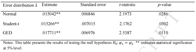 最后作者運用預(yù)測包容檢驗證明了將OVX加入標(biāo)準(zhǔn)EGARCH模型確實增加了有效信息,能改善模型對EUA市場波動的預(yù)測表現(xiàn)。