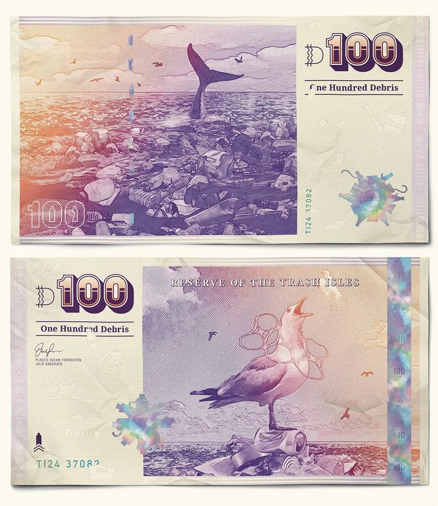 100元的圖案里的海洋和垃圾看著也觸目驚心。