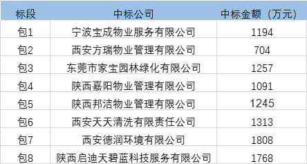 近日,西安市碑林區(qū)、未央?yún)^(qū)兩大億級環(huán)衛(wèi)項目先后開標(biāo)。兩項目共17個標(biāo)包,最大包金額1929萬元,最小標(biāo)金額為704萬元。除了東莞家寶園林和寧波寶成物業(yè)各中一標(biāo)外,另15個標(biāo)包分別被15家陜西省企業(yè)獲得。具體如下表: