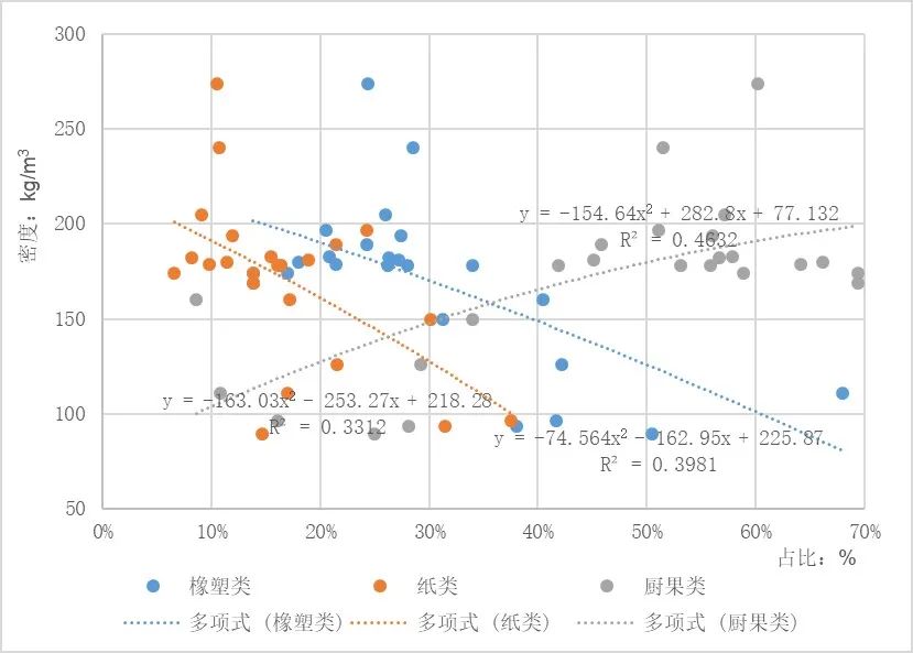 圖13 生活垃圾主要成分占比對垃圾密度的影響趨勢圖