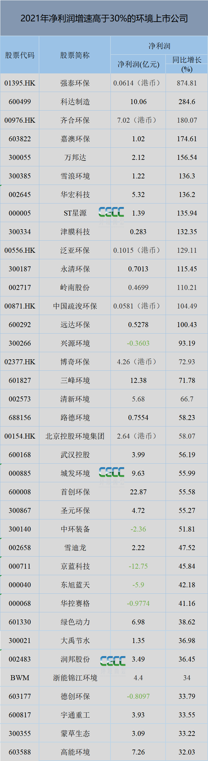 凈利潤(rùn)增速方面,2021年,凈利潤(rùn)增長(zhǎng)超過30%的企業(yè)有38家,按照增長(zhǎng)幅度降序排列如下: