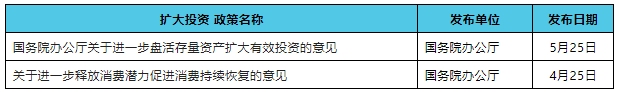 5月25日,國務(wù)院辦公廳印發(fā)《關(guān)于進(jìn)一步盤活存量資產(chǎn)擴(kuò)大有效投資的意見》,明確重點(diǎn)盤活存量規(guī)模較大、當(dāng)前收益較好或增長潛力較大的基礎(chǔ)設(shè)施項(xiàng)目資產(chǎn),包括水電氣熱等市政設(shè)施、生態(tài)環(huán)保、新型基礎(chǔ)設(shè)施等;精準(zhǔn)有效支持新項(xiàng)目建設(shè),盤活存量資產(chǎn)回收資金擬投入新項(xiàng)目建設(shè)的,優(yōu)先支持環(huán)境基礎(chǔ)設(shè)施、“一老一小”等重點(diǎn)領(lǐng)域項(xiàng)目?!蛾P(guān)于進(jìn)一步釋放消費(fèi)潛力促進(jìn)消費(fèi)持續(xù)恢復(fù)的意見》提出鼓勵(lì)消費(fèi)者更換或新購綠色節(jié)能家電、環(huán)保家具等家居產(chǎn)品;加快構(gòu)建廢舊物資循環(huán)利用體系等。