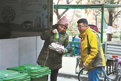 昨天上午,北青報記者來到朝陽區(qū)勁松農(nóng)光里中社區(qū)。春節(jié)假期剛過,這里已在全市率先試點垃圾分類回收與再生資源回收“兩網(wǎng)融合”,探索垃圾分類、分質(zhì)、分時收運模式,引導居民在源頭做好垃圾分類。