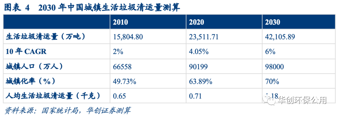 中國未來城市生活垃圾產(chǎn)生量仍存在較大上升空間。根據(jù)中國社會科學(xué)院農(nóng)村發(fā)展研究所、中國社會科學(xué)出版社聯(lián)合發(fā)布《城市藍皮書:中國城市發(fā)展報告No.12》,預(yù)計到2030年,中國城鎮(zhèn)化率將達到70%。按照2030年城鎮(zhèn)化率達到70%、城鎮(zhèn)人均1.18千克/天的垃圾產(chǎn)生量計算,中國的城鎮(zhèn)垃圾量將達到4.21億噸/年。若按未來城鎮(zhèn)化率達到80%、城鎮(zhèn)人均1.18千克/天的垃圾產(chǎn)生量計算,未來中國城鎮(zhèn)垃圾量將達到4.91億噸/年。