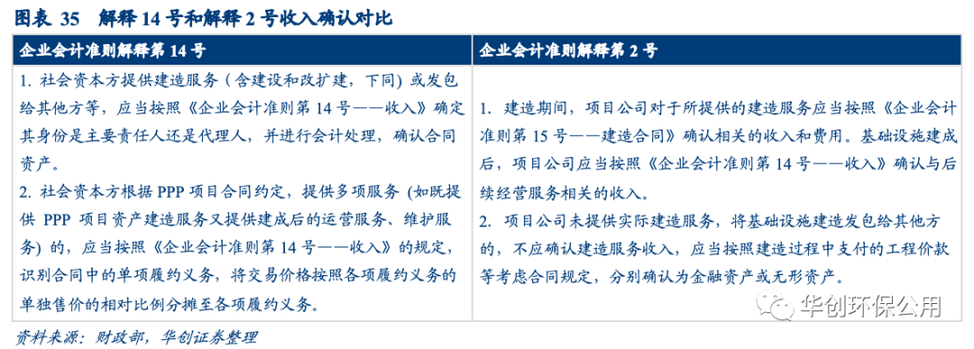 環(huán)保行業(yè)中很多項目的業(yè)主都是地方政府,所以項目大多采用PPP、BOT模式。2021年1月26日,財政部印發(fā)《企業(yè)會計準則解釋第14號》,規(guī)范了企業(yè)對政府和企業(yè)合作(PPP)項目合同的會計處理,并完全取代了《解釋2號》中BOT項目會計處理方法。該會計政策變更的影響已體現(xiàn)在環(huán)保上市公司發(fā)布的2021年報之中。在本周的小專題研究中,我們將以典型環(huán)保上市公司財報為基礎(chǔ),剖析該會計準則變更對資產(chǎn)負債表、現(xiàn)金流量表和利潤表的影響。