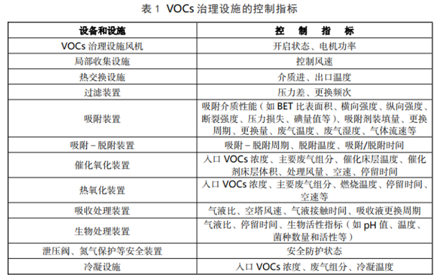 5.2.1 排污單位應(yīng)根據(jù)生態(tài)環(huán)境保護(hù)要求以及相關(guān)的技術(shù)文件資料,在操作規(guī)程中設(shè)定VOCs 治理設(shè)施正常運行的控制指標(biāo),包括但不限于表 1 所列內(nèi)容