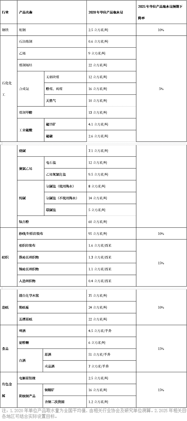 重點行業(yè)主要產(chǎn)品水效提升預(yù)期目標(biāo):