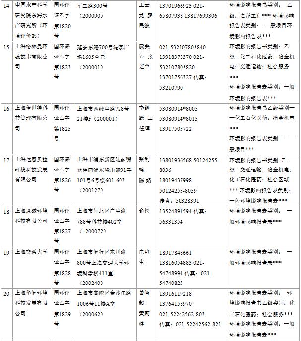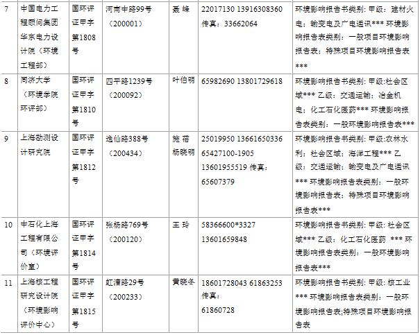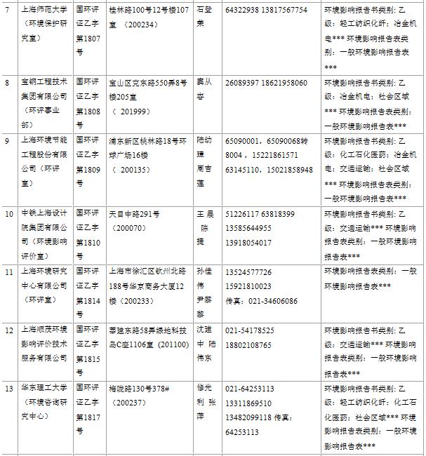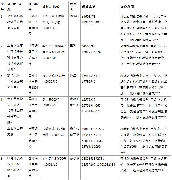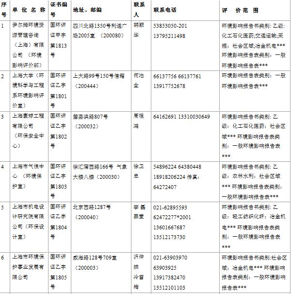 上海市建設(shè)項(xiàng)目環(huán)境影響評(píng)價(jià)單位一覽表(2017年2月更新)