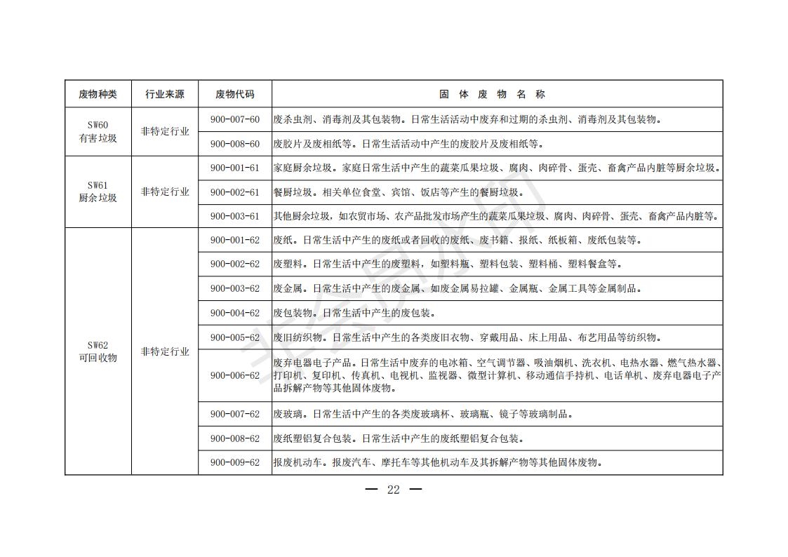 近日,生態(tài)環(huán)境部發(fā)布《固體廢物分類目錄(征求意見稿)》,公開向社會(huì)征求意見,截止時(shí)間為2022年7月20日。征求意見稿全文如下: