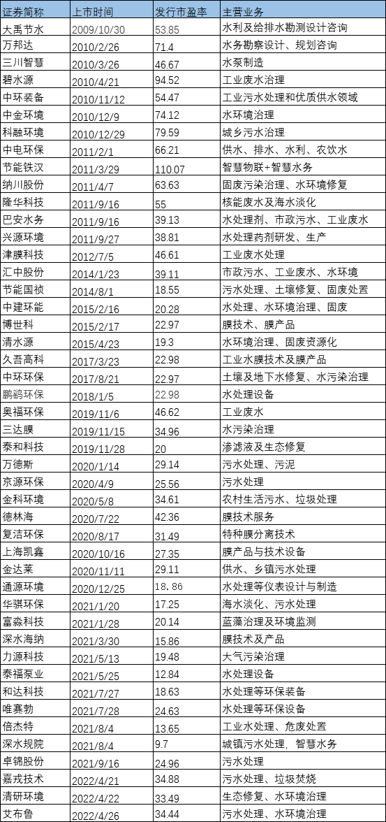 是時,中國城市水業(yè)也開始進入成熟期,但仍處于補短板階段。據(jù)了解,“十一五”期間我國城鎮(zhèn)污水處理量每年以10%的速率增長,未來發(fā)展空間巨大,特別是一些具有核心優(yōu)勢的企業(yè),隨著產(chǎn)業(yè)的發(fā)展浪潮,正快速做大,這些都帶給了資本對產(chǎn)業(yè)發(fā)展更多的想象和期待。2011年之前,以碧水源為代表的國內(nèi)一系列技術型企業(yè)紛紛登陸創(chuàng)業(yè)板,成為資本的香餑餑,一起拉高了行業(yè)企業(yè)的發(fā)行市盈率。