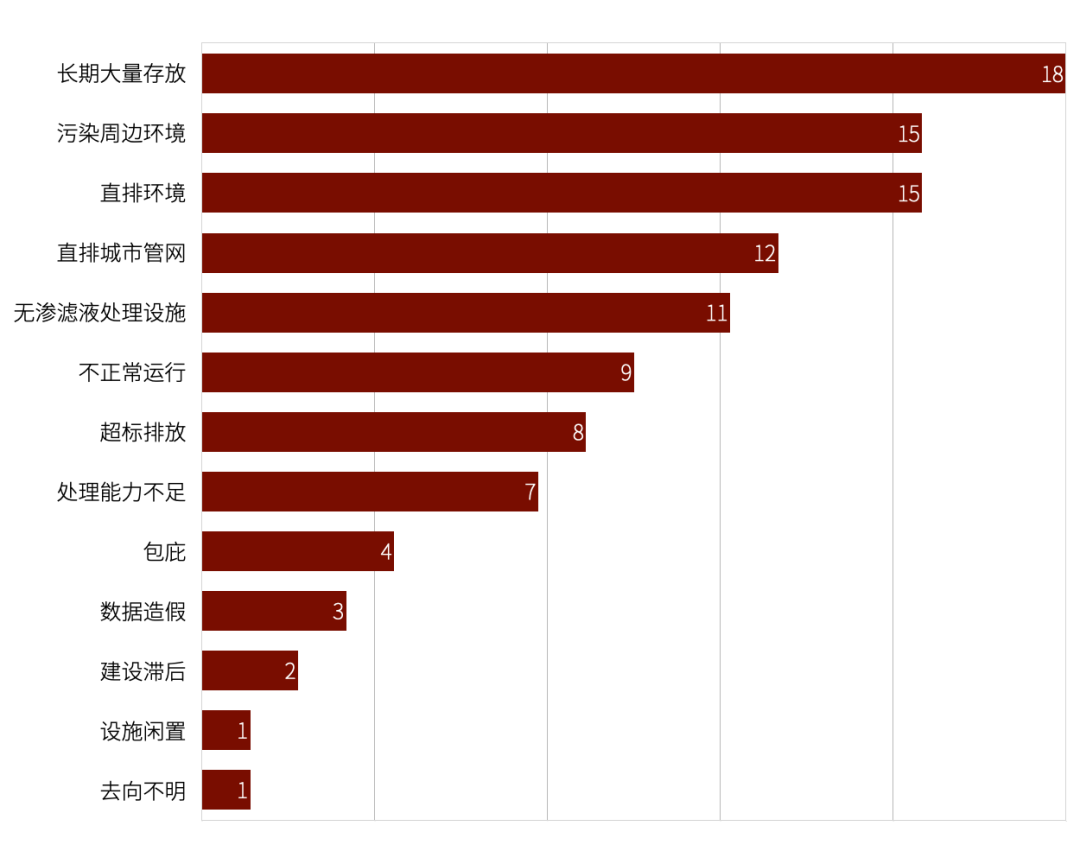 圖4.中央環(huán)保督察滲濾液違規(guī)處理中的具體問題(2015-2022)