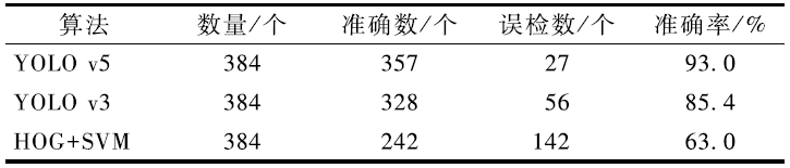 將基于YOLO v5算法的垃圾分類識別結(jié)果與YOLO v3深度學習算法以及傳統(tǒng)的機器學習算法HOG+SVM對比,結(jié)果如表1所示。本研究使用了384種垃圾進行算法的檢測。從表1中可知:YOLO v3深度學習精度低于YOLO v5算法,傳統(tǒng)機器學習的方法HOG+SVM 準確率更低,只有63%。YOLO v5算法檢測結(jié)果準確,在數(shù)據(jù)集豐富的情況下準確率高。本研究對垃圾圖像進行了訓練,準確率可達到93.0% ,因此可用于實際應用。
