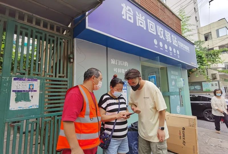 今年初,石門二路街道的居民發(fā)現(xiàn),身邊多出一家干凈整潔的廢品回收“便利店”。更有趣的是,交投可回收物后,還能按品類、重量得到“減碳積分”。
