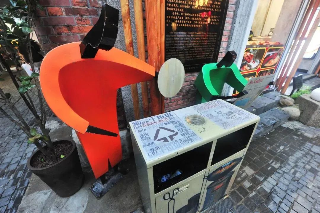 田子坊弄堂口形態(tài)雕塑引導(dǎo)“垃圾分類”