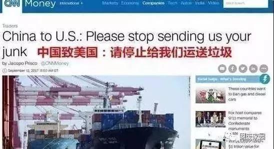 美國(guó)CNN新聞網(wǎng)站在一篇文章中這樣寫(xiě)道:幾十年來(lái),船運(yùn)集裝箱裝載著美國(guó)的廢棄物運(yùn)送到中國(guó)回收利用,這樁每年50億美元的生意,如今卻面對(duì)衰落的風(fēng)險(xiǎn)。在美國(guó),約有15.5萬(wàn)個(gè)工作崗位依賴(lài)于美國(guó)對(duì)中國(guó)的垃圾出口。