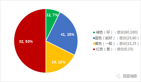 30個(gè)城市平均分26.0分,中位數(shù)得分17.8分。垃圾分類等級(jí)為好的城市2個(gè),較好的城市8個(gè),共占33%,差的城市有15個(gè),占50%,垃圾分類表現(xiàn)總體處于低水平。