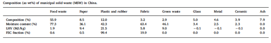 圖6.某研究中我國(guó)生活垃圾中各個(gè)組分的比例、熱值和化石源碳含量