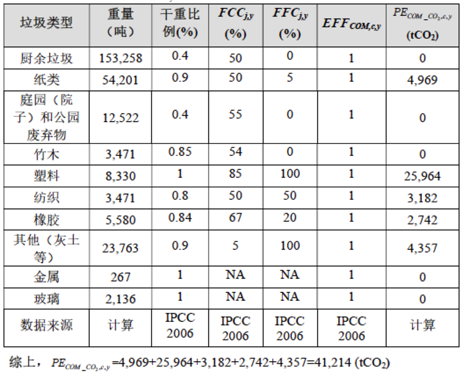 絕對(duì)碳排放量=重量x碳含量的比例x化石碳占總碳含量的比例x燃燒效率(EFF)