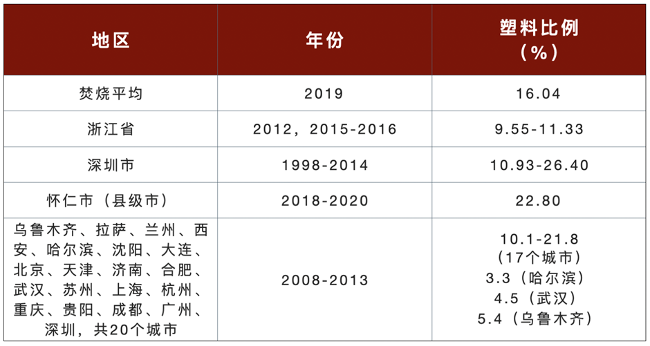 圖9.學(xué)術(shù)研究中我國(guó)生活垃圾中塑料比例