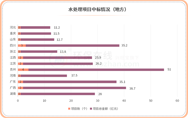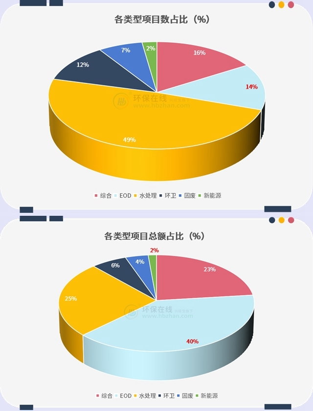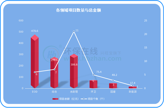 圖中也可以看出,水處理項(xiàng)目仍然是最多的類(lèi)別,不過(guò)EOD項(xiàng)目以及生態(tài)環(huán)境綜合項(xiàng)目雖然數(shù)量少,但項(xiàng)目金額相當(dāng)可觀。