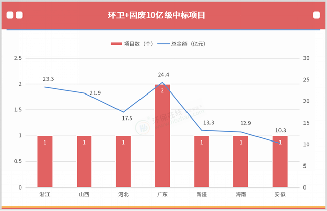 上半年,固廢和環(huán)衛(wèi)中標(biāo)的10億級(jí)項(xiàng)目也有18.6%,總金額占比也超過(guò)了10%,算得上豐收了。而且,上榜的固廢項(xiàng)目并不再以垃圾焚燒為主,固廢資源化的發(fā)展勢(shì)頭還是向好的。