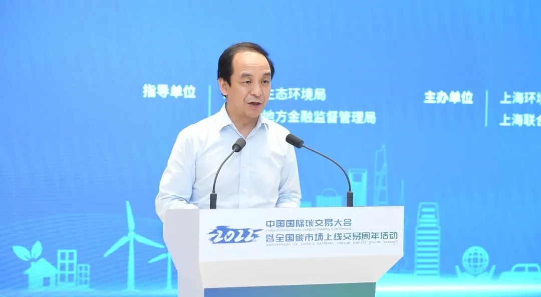 7月16日,全國碳排放權(quán)交易市場啟動上線交易一周年之際,在上海市生態(tài)環(huán)境局和上海市地方金融監(jiān)督管理局的指導(dǎo)下,由上海環(huán)境能源交易所(簡稱“上海環(huán)交所”)和上海聯(lián)合產(chǎn)權(quán)交易所(簡稱“上海聯(lián)交所”)通過線上線下相結(jié)合的形式,在上海環(huán)交所交易大廳成功舉辦首屆“2022中國國際碳交易大會”。中國氣候變化事務(wù)特使解振華通過視頻連線發(fā)表主旨演講,“GF60論壇”學(xué)術(shù)委員會委員、原中國銀行業(yè)監(jiān)督管理委員會主席劉明康,生態(tài)環(huán)境部應(yīng)對氣候變化司司長李高、上海市生態(tài)環(huán)境局局長程鵬以及多名專家學(xué)者在大會上演講和交流。