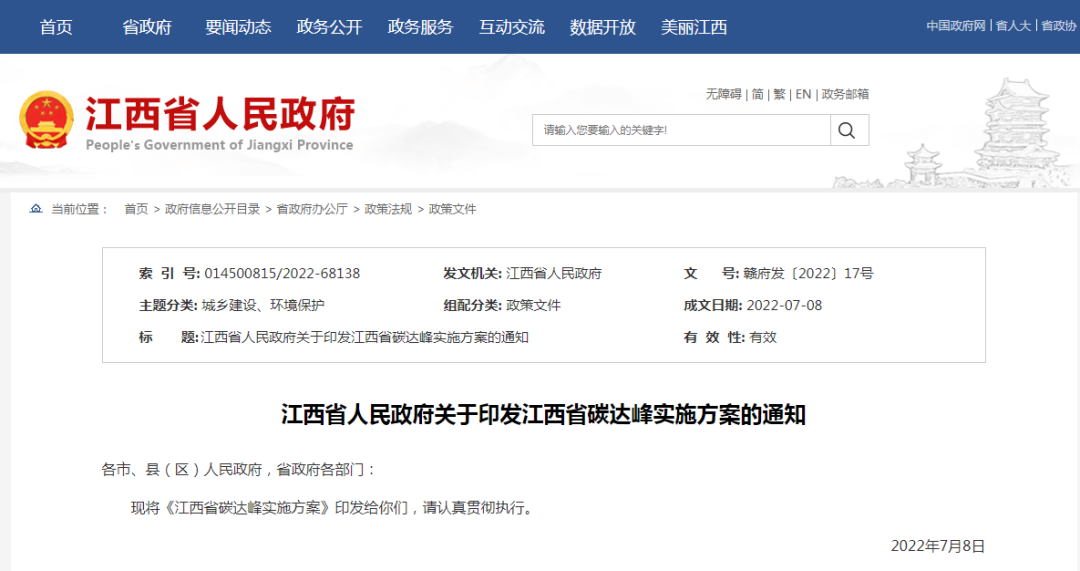 為深入貫徹黨中央、國務(wù)院關(guān)于碳達峰碳中和重大戰(zhàn)略決策,全面落實《中共江西省委 江西省人民政府關(guān)于完整準(zhǔn)確全面貫徹新發(fā)展理念做好碳達峰碳中和工作的實施意見》,扎實推進全省碳達峰行動,制定本方案。