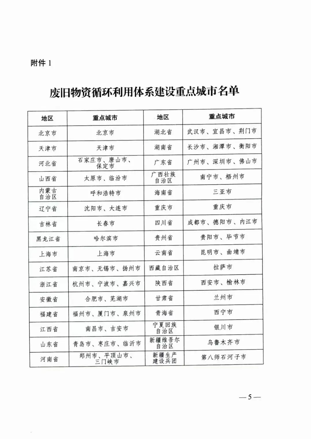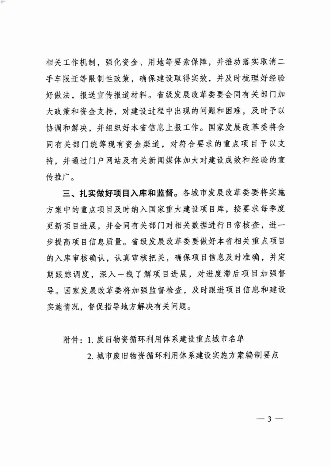 國家發(fā)展改革委辦公廳等:廢舊物資循環(huán)利用體系建設(shè)重點(diǎn)城市名單的通知
