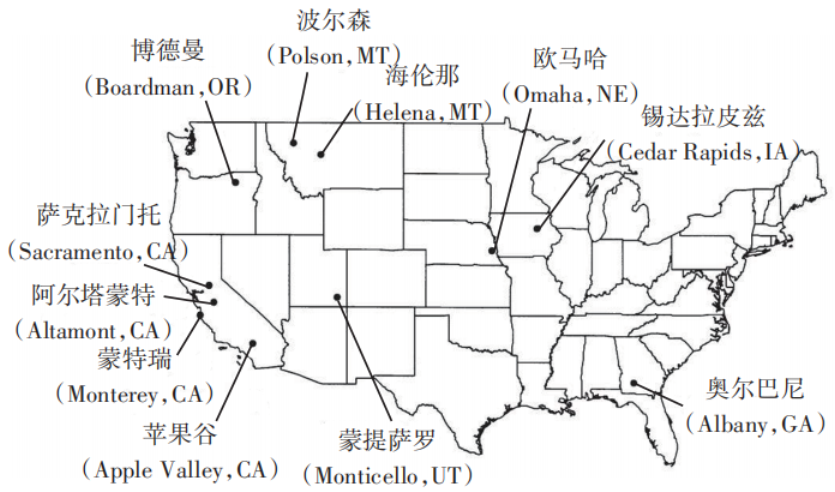在對土質(zhì)覆蓋層進(jìn)行的現(xiàn)場試驗(yàn)研究中,最具代表性的項(xiàng)目當(dāng)屬US EPA資助的ACAP項(xiàng)目。該項(xiàng)目旨在評價(jià)替代型土質(zhì)覆蓋層的現(xiàn)場防滲性能,并為替代型土質(zhì)覆蓋層的設(shè)計(jì)、施工及后期維護(hù)提供必要的指導(dǎo)。ACAP項(xiàng)目于1998年啟動,先后在美國干旱、半干旱、半濕潤及濕潤地區(qū)的11個(gè)不同填埋場(圖7)建設(shè)了10個(gè)傳統(tǒng)阻斷型覆蓋層試驗(yàn)基地和14個(gè)替代型土質(zhì)覆蓋層現(xiàn)場試驗(yàn)基地。通過對試驗(yàn)基地的氣象條件、覆蓋層的徑流、側(cè)向?qū)?、土層存儲以及滲漏等指標(biāo)進(jìn)行長達(dá)1~3 a的監(jiān)測,獲得了各試驗(yàn)基地的水量平衡數(shù)據(jù),對比評估了替代型土質(zhì)覆蓋層的適用性。ACAP項(xiàng)目的結(jié)果表明:在北美的干旱、半干旱和半濕潤地區(qū),單層騰發(fā)式覆蓋層與毛細(xì)阻滯覆蓋層的防滲效果與傳統(tǒng)阻斷型覆蓋層相當(dāng),而且二者能夠避免土體開裂引發(fā)的大規(guī)模滲漏行為。由此得出,生態(tài)型土質(zhì)覆蓋層的防滲性能優(yōu)于傳統(tǒng)阻斷型覆蓋層。