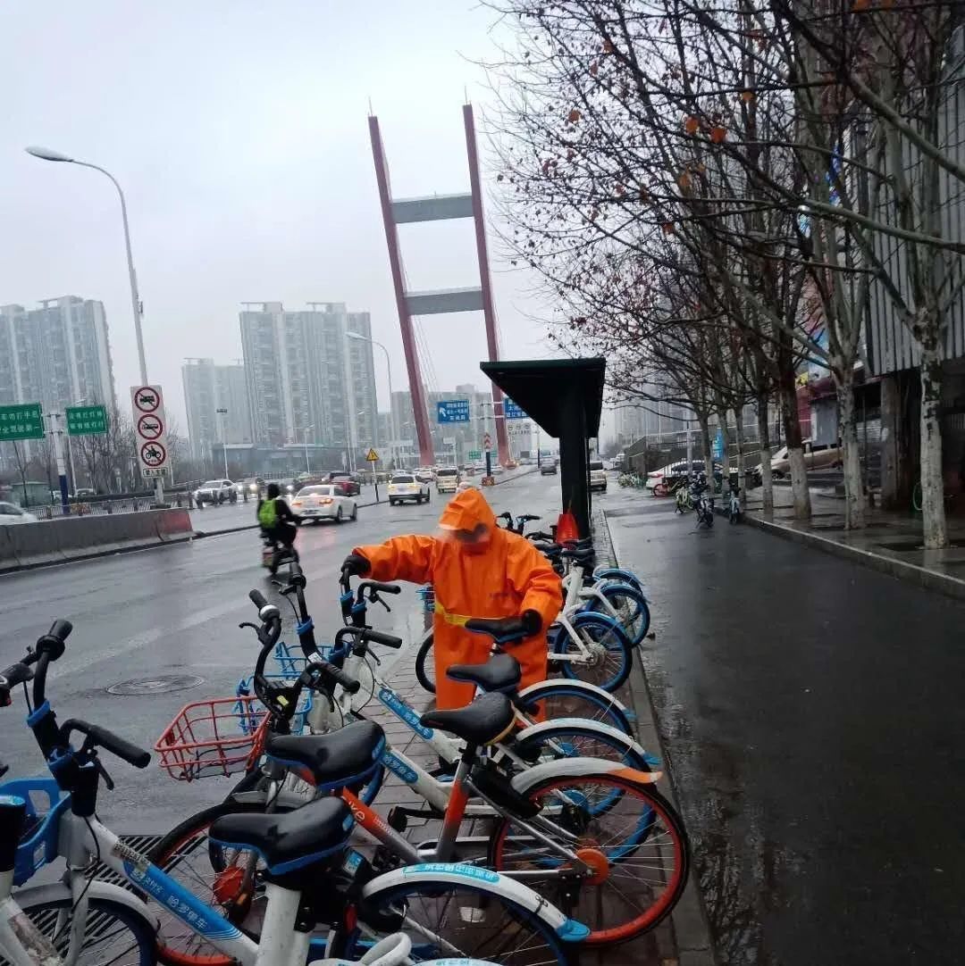 - 2018年10月,合肥市瑤海區(qū)在共享單車治理模式中開啟了“環(huán)衛(wèi)+”模式,根據(jù)環(huán)衛(wèi)工人路面作業(yè)時(shí)間長(zhǎng)、人數(shù)多、覆蓋面廣的特點(diǎn),對(duì)亂停亂放在人行道、盲道、公交站臺(tái)、綠化帶等處的共享單車予以規(guī)整擺放。