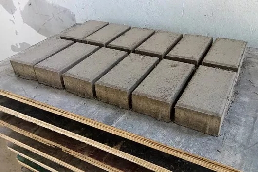 圖片說(shuō)明:用骨料摻和水泥制成的“再生磚”