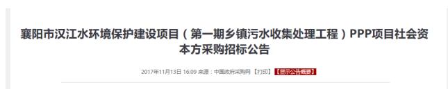 從中國政府采購網(wǎng)獲悉,43億鄉(xiāng)鎮(zhèn)污水治理項(xiàng)目開始招標(biāo):襄陽市漢江水環(huán)境保護(hù)建設(shè)項(xiàng)目(第一期鄉(xiāng)鎮(zhèn)污水收集處理工程)PPP項(xiàng)目社會(huì)資本方采購項(xiàng)目發(fā)布招標(biāo)公告,公告顯示,項(xiàng)目投資估算約432086.80萬元。