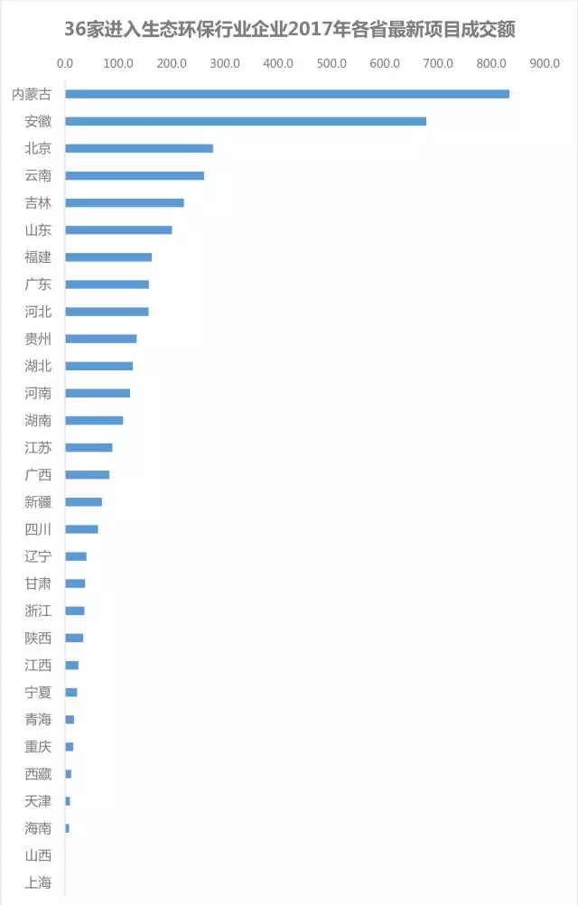 (備注:2017年上述36家企業(yè)在黑龍江省沒有項目成交額,未在圖中標(biāo)注)