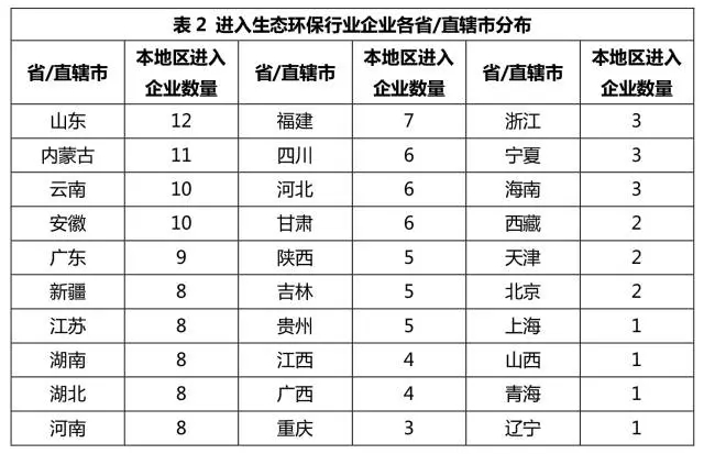 從各省生態(tài)環(huán)保細(xì)分領(lǐng)域優(yōu)勢企業(yè)分布來看,山東省所涉足的環(huán)保細(xì)分領(lǐng)域是最全的,各細(xì)分領(lǐng)域中的佼佼者也較為多樣,并無單個企業(yè)獨占鰲頭的現(xiàn)象,說明山東省生態(tài)環(huán)保行業(yè)的競爭性和機會都較大。