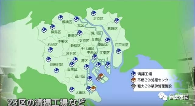 可燃垃圾會(huì)被垃圾車運(yùn)送到處理工廠進(jìn)行處理,上圖就是整個(gè)東京都的清掃工廠的分布圖。