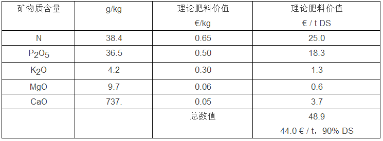 目前在德國瑞士基本上市政污泥以熱處置為主情況下,在法國和美國仍然還存在很大市場,允許干化后市政污泥作為肥料被回收利用。但此時必須注意, 污泥農(nóng)用時必須通過肥料中間商的銷售途徑進入市場。舉例來說,污泥的理論肥料價值可通過其中的礦化物質(zhì)組成來計算(價格基礎(chǔ) 2007)[6]。不管如何,計算所獲得的理論商業(yè)價值要比前面的污泥燃料高出好幾倍。以下表 2 可以清楚地顯示這一點。