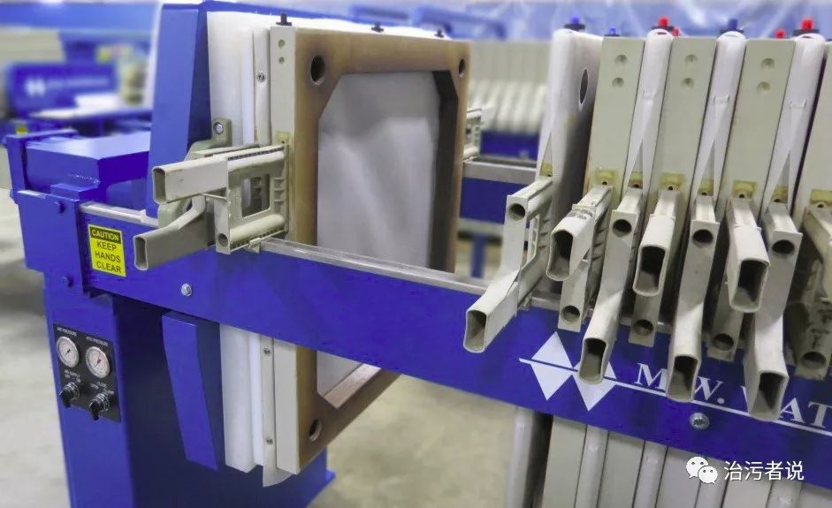作為污泥脫水設備的一類,板框式壓濾機與濾帶壓濾機的脫水原理是一致的,但是板框在設計上與濾帶壓濾機是不一樣的。濾帶壓濾機是通過輥筒帶動濾帶連續(xù)運行,污泥在濾袋上連續(xù)運行脫水的,但是板框的是間斷運行的,進入一部分泥后,壓濾完成后,再進行下一次進泥脫水。