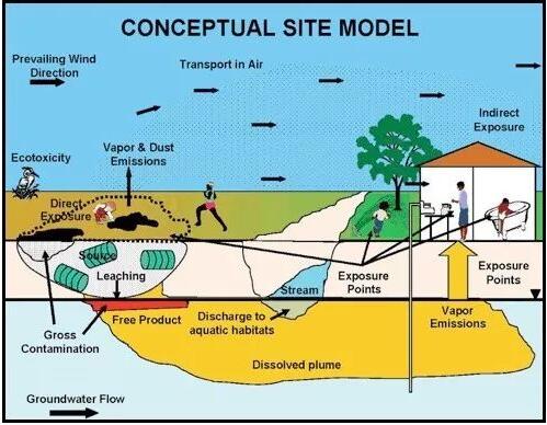 場地調(diào)查是從各種來源收集特定場地的信息和數(shù)據(jù)以表征受污染場地的物理,生物和化學系統(tǒng)。場地概念模型(CSM)是綜合了所有場地的歷史信息,水文地質(zhì)特征,現(xiàn)場及環(huán)境受體的調(diào)查集成的一個三維的場地圖,用以說明污染物分布,污染釋放機制,遷移途徑,暴露途徑和潛在受體。