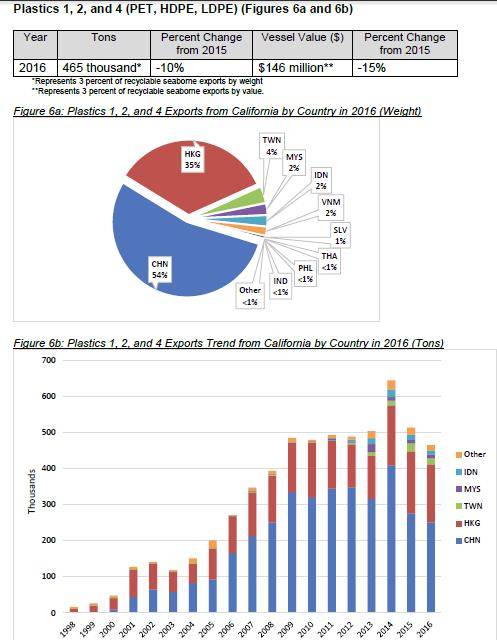 因此,徐海云為中國(guó)的回收再生領(lǐng)域“打抱不平”:“目前,中國(guó)是最大的塑料生產(chǎn)國(guó),也是最大的消費(fèi)國(guó),但人均消費(fèi)量不到發(fā)達(dá)國(guó)家的一半。目前,塑料瓶的回收率,歐盟的數(shù)據(jù)是50%(2015年),美國(guó)是28%(2016年),日本是92%(2015年),中國(guó)沒(méi)有權(quán)威的統(tǒng)計(jì)數(shù)據(jù),但我認(rèn)為一定比他們高。易拉罐方面,歐盟回收率目標(biāo)是73%,提出到2025年達(dá)到75%,但這個(gè)目標(biāo),中國(guó)一定也超過(guò)了。”在美國(guó)加州做的出口到中國(guó)廢塑料統(tǒng)計(jì)中,可以看到中國(guó)廢塑料回收利用情況與其他幾個(gè)國(guó)家的對(duì)比情況: