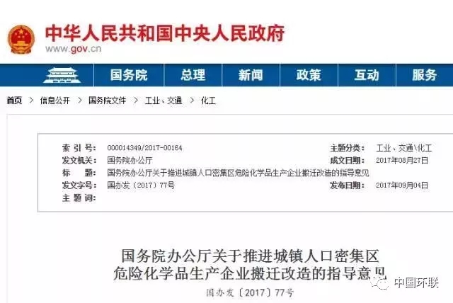 西安:全面啟動(dòng)人口密集區(qū)危險(xiǎn)化學(xué)品生產(chǎn)企業(yè)搬遷工程,2018年3月底前取得階段性成果,2018年4月至2019年10月深化提升。新建化工項(xiàng)目必須進(jìn)入產(chǎn)業(yè)集中區(qū)或化工園區(qū)。