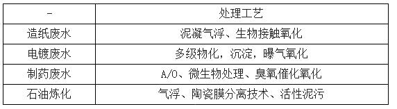 不同子行業(yè)處理廢水工藝對(duì)比