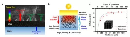 (c) 實(shí)驗(yàn)蒸汽發(fā)生效率與3DG的不同厚度(模擬石墨烯層)圖像。