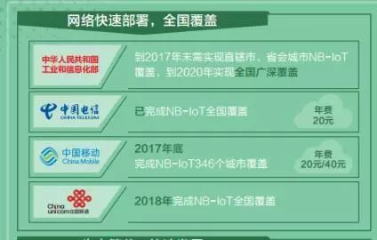中國工業(yè)和信息化部在2017年6月初下發(fā)《關(guān)于全面推進(jìn)移動(dòng)物聯(lián)網(wǎng)(NB-IoT)建設(shè)發(fā)展的通知》,要求到2020年,中國NB-IoT網(wǎng)絡(luò)的基站規(guī)模要達(dá)到150萬個(gè),實(shí)現(xiàn)對(duì)于全國的普遍覆蓋以及深度覆蓋。國內(nèi)三大電信運(yùn)營商也加快了建設(shè)的步伐,預(yù)計(jì)到2017年底,全國部署超過50萬個(gè)NB-IoT基站。