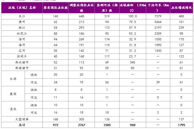 1.1“十三五”水環(huán)境監(jiān)測(cè)加碼,點(diǎn)位增加近兩倍