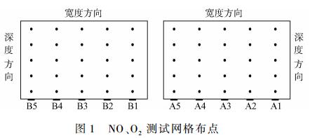 NO、O2進出口濃度采用德國德圖公司Testo350型煙氣分析儀測定,NO量程0~500μL?L-1,精度0.1μL?L-1,O2量程0%~25%,精度0.01%;NH3逃逸率采用自制氨化學(xué)取樣系統(tǒng)測定,配套用3071型智能煙氣采樣器流量范圍1.0~3.0L?min-1,精度±5%,煙氣取樣槍長度為5m,壓力測試用WOBI膜盒壓力表,量程0~2000Pa,精度±5Pa,配套4.5m的S型皮托管1根,校正系數(shù)為0.84。