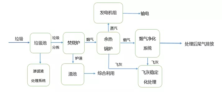 一般而言,不同生活垃圾焚燒廠、不同企業(yè)、不同研究機構開發(fā)的生活垃圾焚燒技術與城市生活垃圾焚燒工藝流程不盡相同。圖7為城市生活垃圾焚燒發(fā)電系統(tǒng)的一般工藝流程。