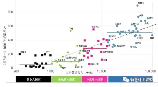 在過去的50年中,全球各國的人均廢物產(chǎn)生量一直都與收入水平表現(xiàn)出了密切的相關(guān)關(guān)系。