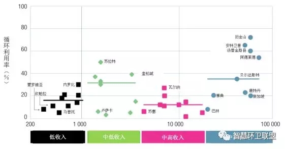 圖8. 39個(gè)不同收入水平的城市的回收利用率*